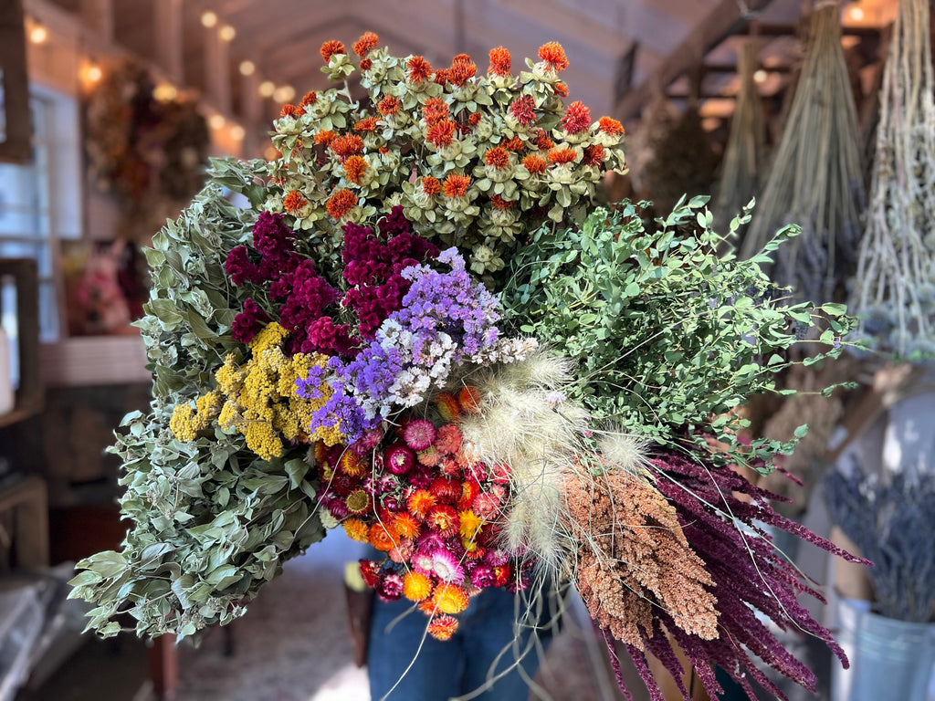 Dried Flower orders are shipped via UPS Ground from our farm in Columbus, OH. Wreaths and bouquets may ship 5-7 business days from when the order is placed. Shipping cost will be calculated at checkout.
